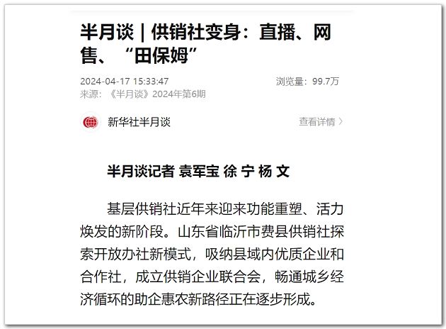“供銷社利用渠道優(yōu)勢(shì),避開中間商收購倒賣,保障農(nóng)產(chǎn)品在收購端高于當(dāng)?shù)厥袌鰞r(jià),在零售端低于市場價(jià),使農(nóng)民和消費(fèi)者的利益都得到保障。”王慶華表示,2024年,費(fèi)縣供銷社將以開放辦社為抓手,持續(xù)建設(shè)數(shù)字供銷運(yùn)營平臺(tái),暢通縣鄉(xiāng)村三級(jí)現(xiàn)代商貿(mào)流通服務(wù)網(wǎng)絡(luò),不斷筑牢供銷社“為農(nóng)、務(wù)農(nóng)、姓農(nóng)”根基。